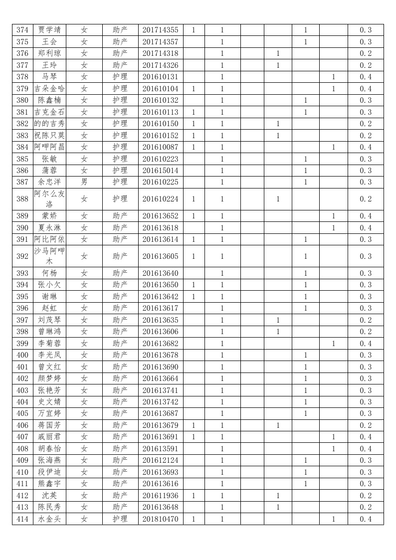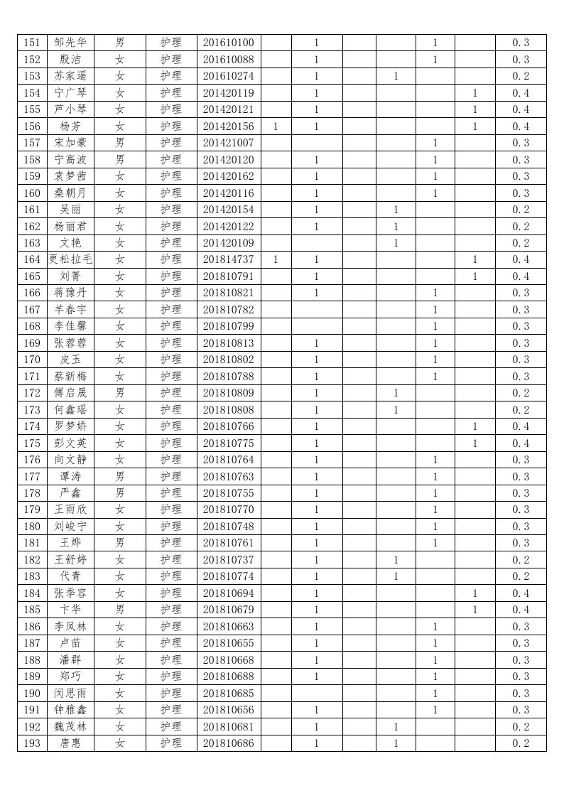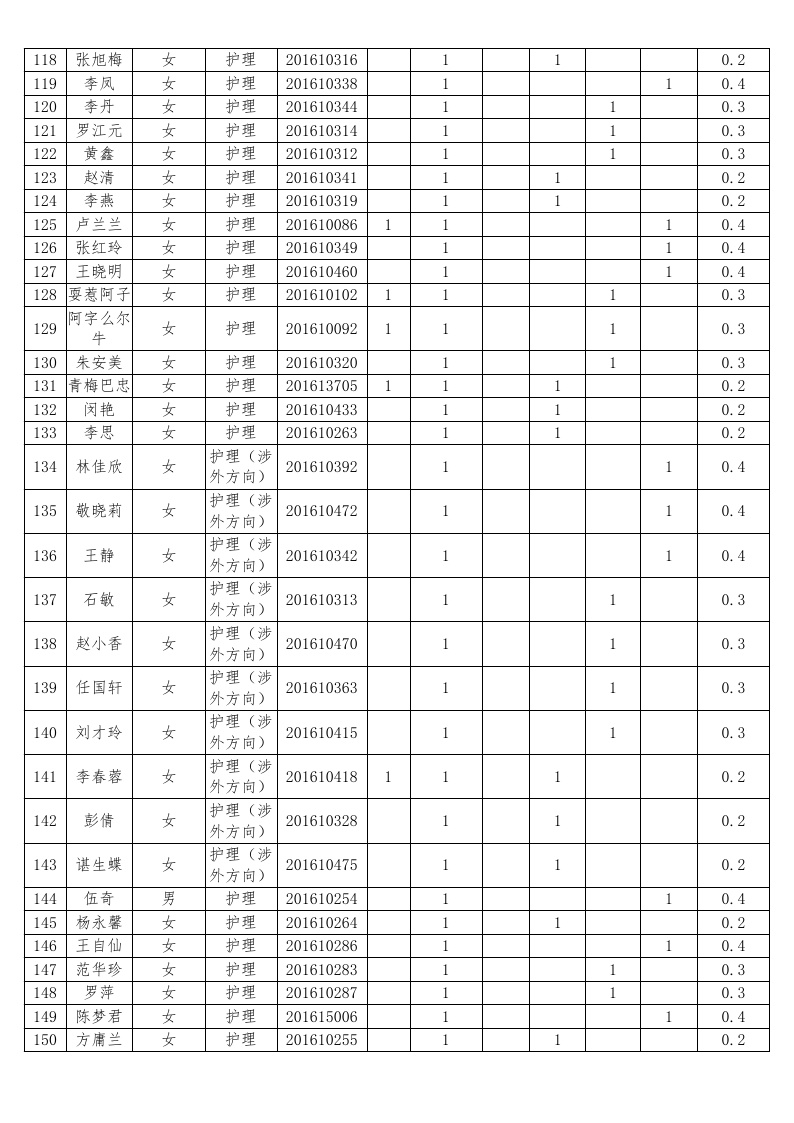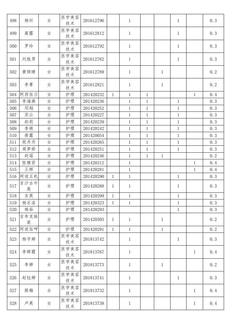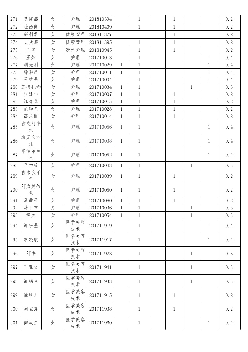 护理系2018-2019学年度本专科国家助学金受助员工名单公示汇总表