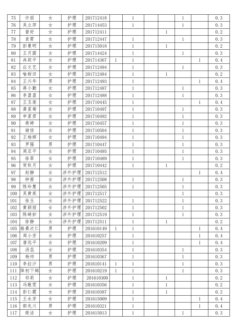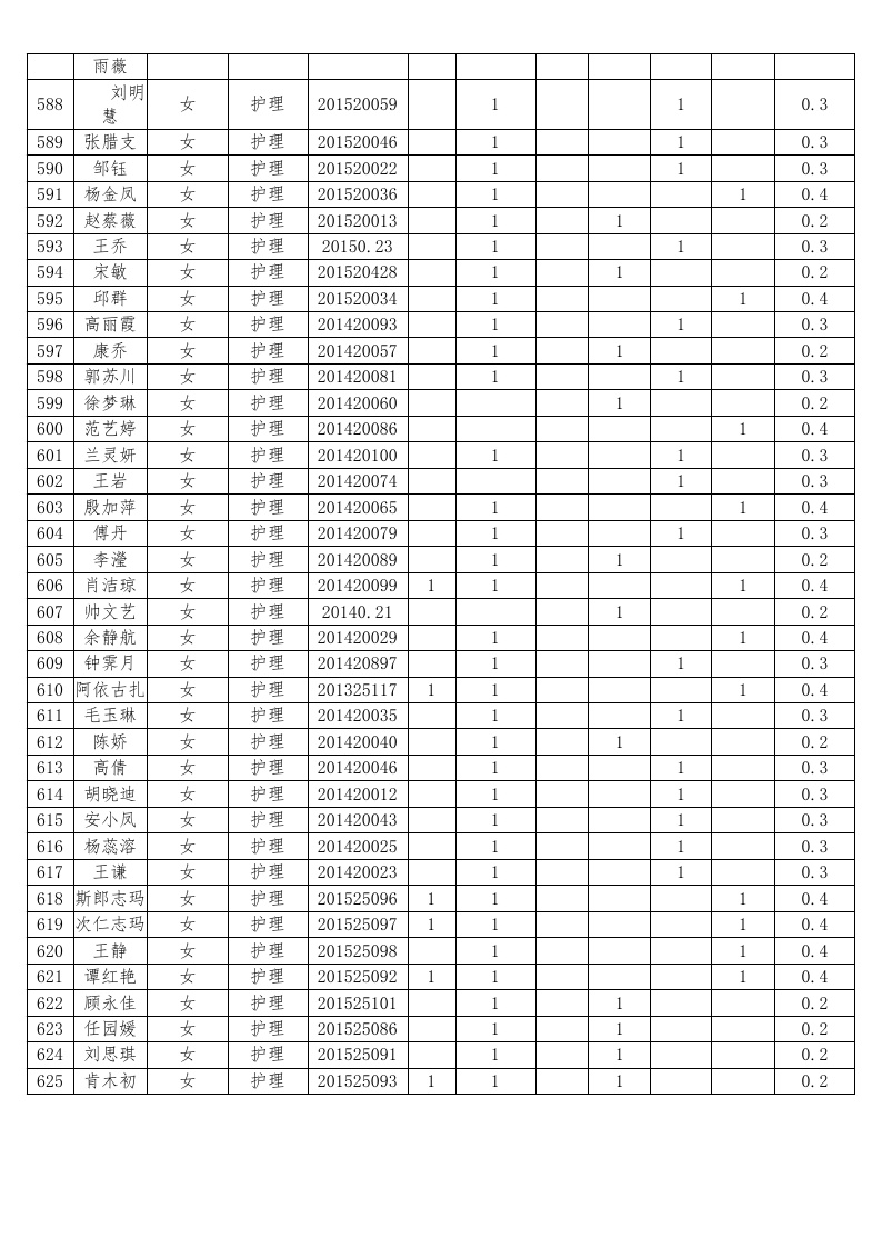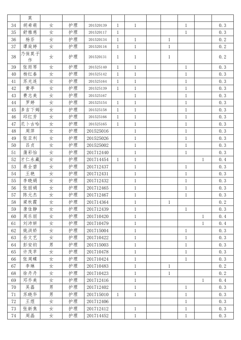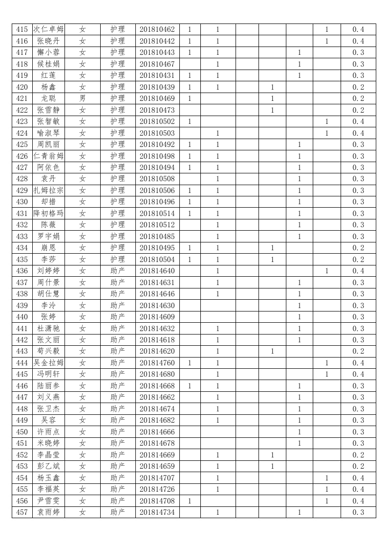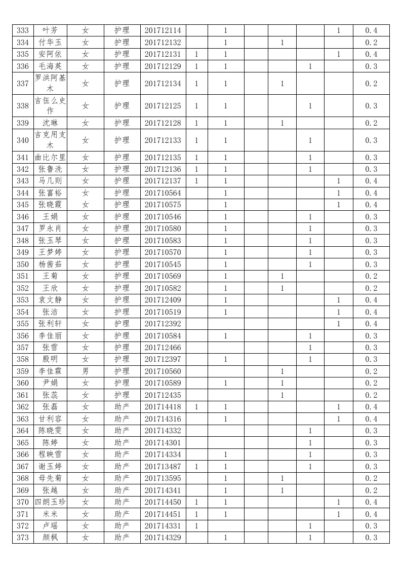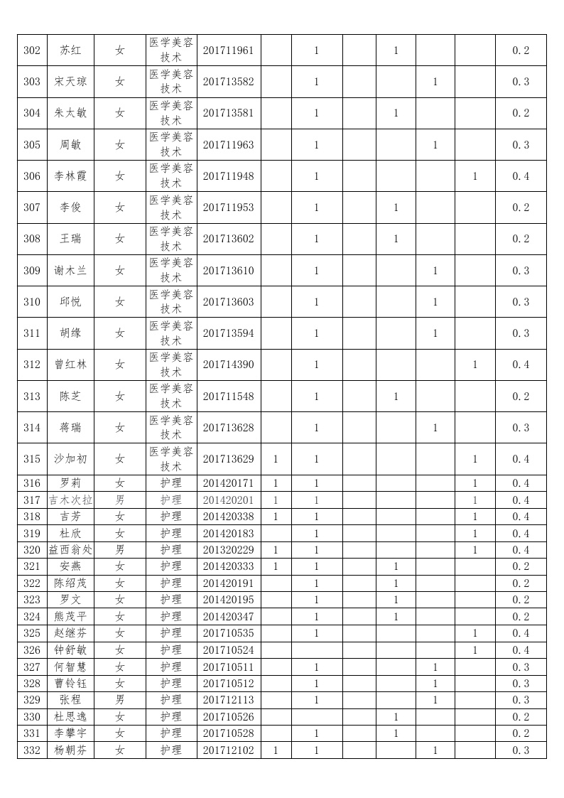 护理系2018-2019学年度本专科国家助学金受助员工名单公示汇总表