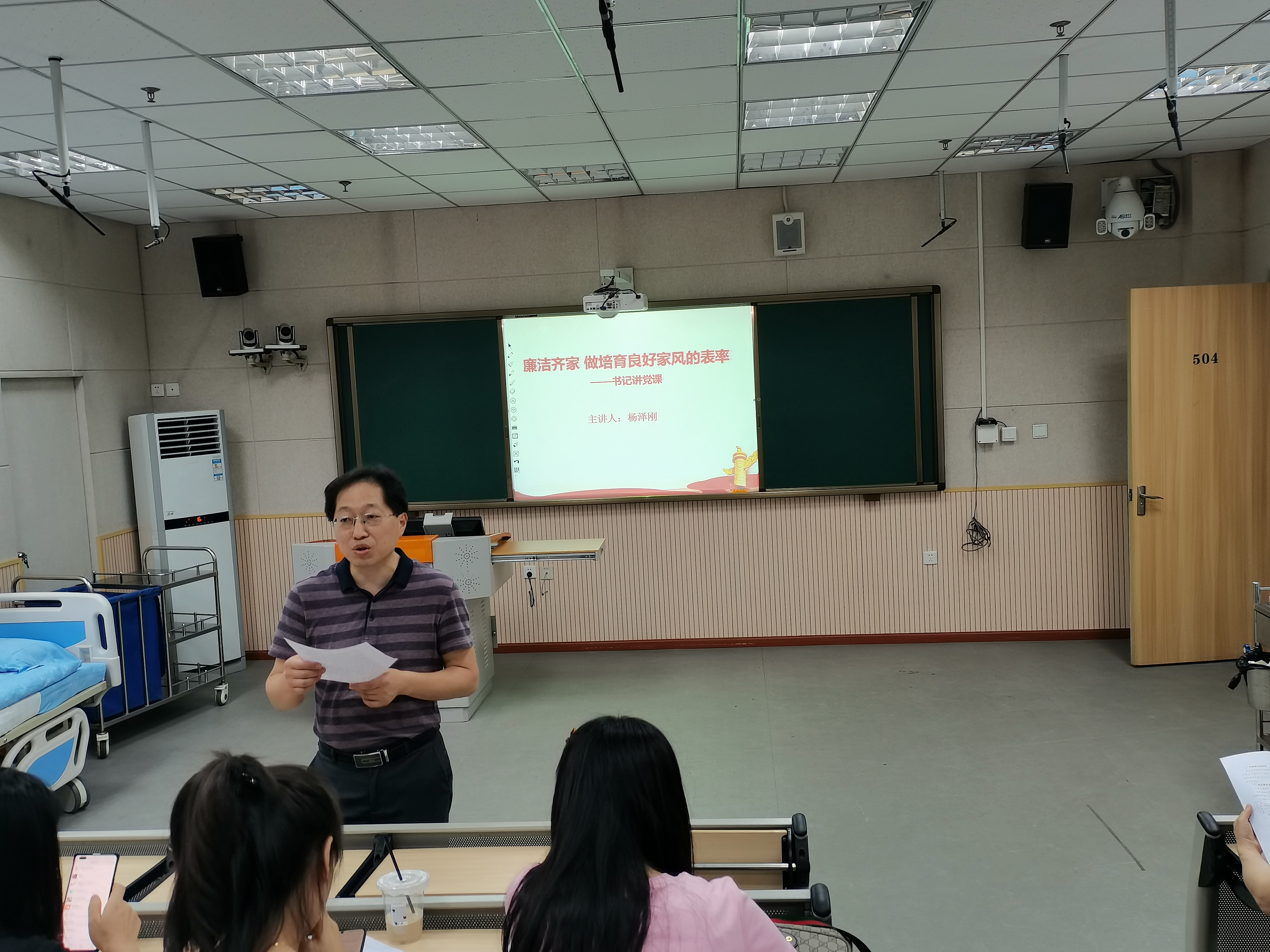6月21日下午,护理公司党总支书记杨泽刚在青年路校区实训楼504教室为3044永利集团全体教职工开展了主题为《廉洁齐家 做培育良好家风的表率》的专题党课。