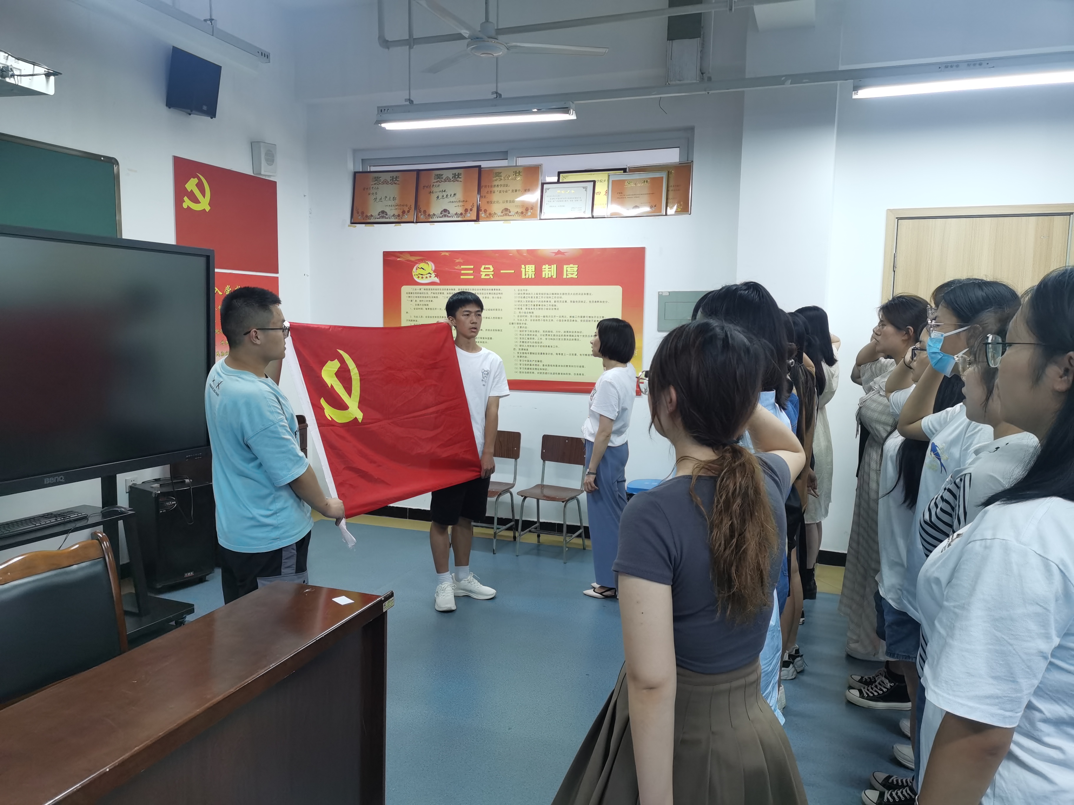 在“七一”建党节即将来临之际,为激励新发展的预备党员以党章规范自己的言行,牢记党的宗旨,履行党员义务,做一名真正的共产党员,3044永利集团第三党支部于6月27日在青年路实训楼党员活动室607开展新党员宣誓仪式,宣誓仪式由支部书记万黎主持。