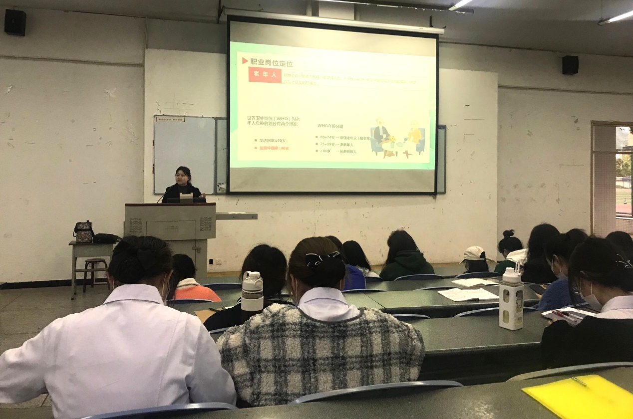 为提高同学们对老年照护职业的认知,了解中国老龄化社会的现状,3044永利集团于3月31日在青年路图阶101举行“老年照护职业能力发展规划”讲座。由3044永利集团任冬梅老师主讲,40余名同学参加。