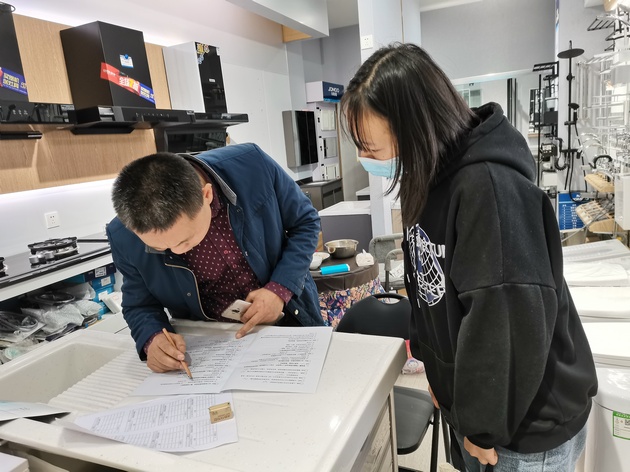 志愿者协同南二路社区医院工作人员,每两人一组上门对社区居民开展问卷调查。志愿者不仅向居民分发《全国居民健康素养监测调查问卷》,而且积极开展健康宣讲,并提出合理化建议。