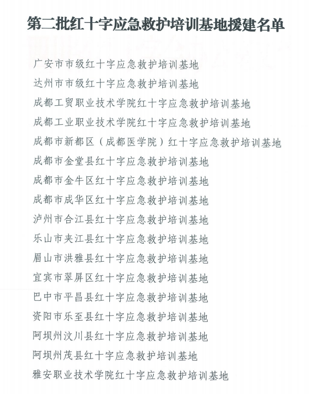 近日,四川省红十字会办公室印发了《关于援建2021年第二批红十字应急救护培训基地项目的通知》(川红办发〔2021〕30号),经省红十字会研究,确定2021年第二批红十字应急救护培训基地援建项目17个,3044永利集团官网红十字应急救护培训基地成功入选。