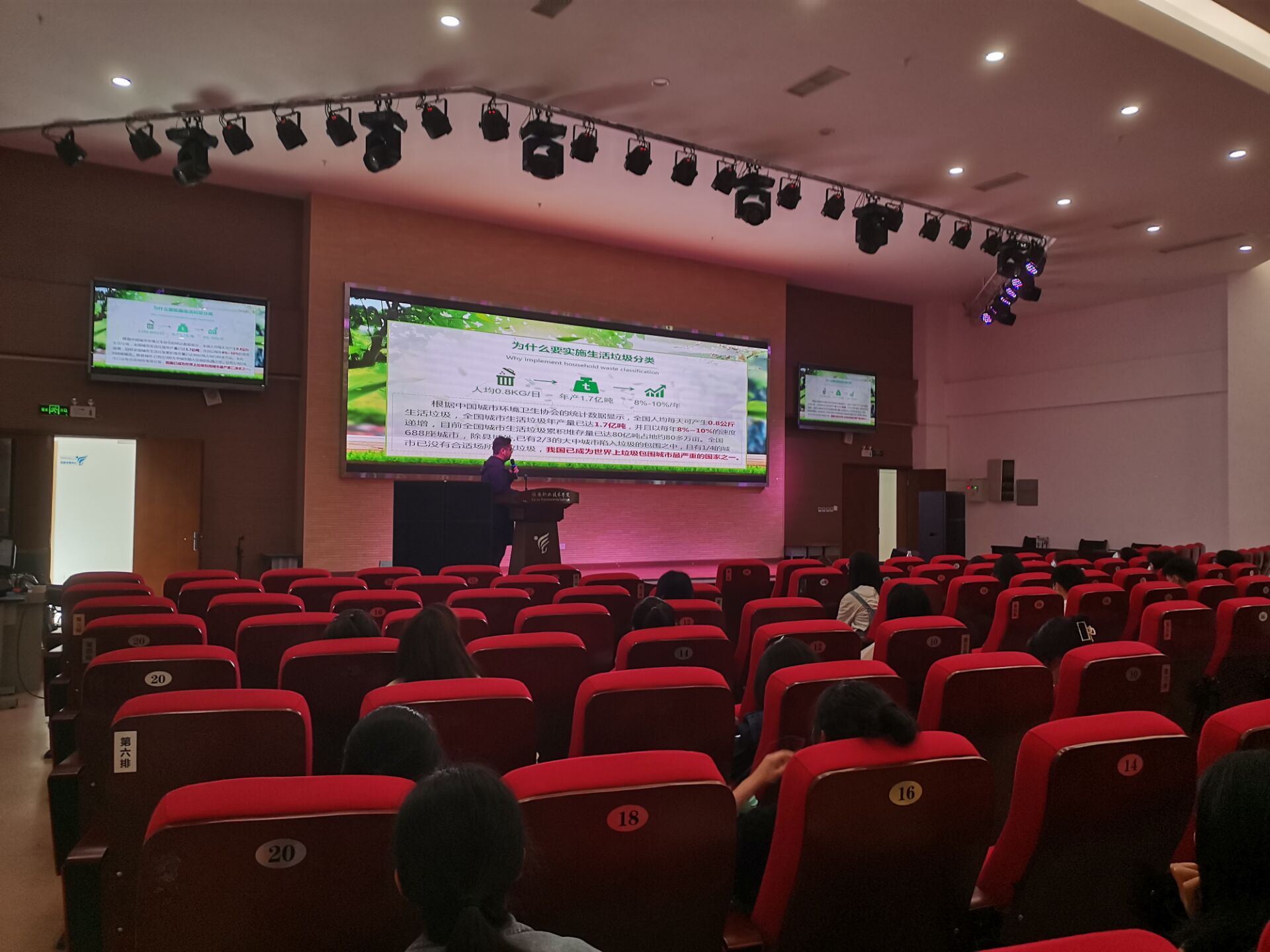 会上,介绍了垃圾分类法律法规,并着重讲解了垃圾分类的重要性,垃圾分类的方法以及垃圾分类后的正确处置方法。通过此次垃圾分类知识宣讲,让同学们对垃圾分类有了更系统的了解,认识到了垃圾分类的重要性,同学们纷纷表示,在今后的学习、生活中,要从自身做起,从点滴做起,同时还要积极向同学、家人宣传垃圾分类知识,当好宣讲员,让“绿色、低碳、环保”的理念深入人心,营造良好学习、生活环境。