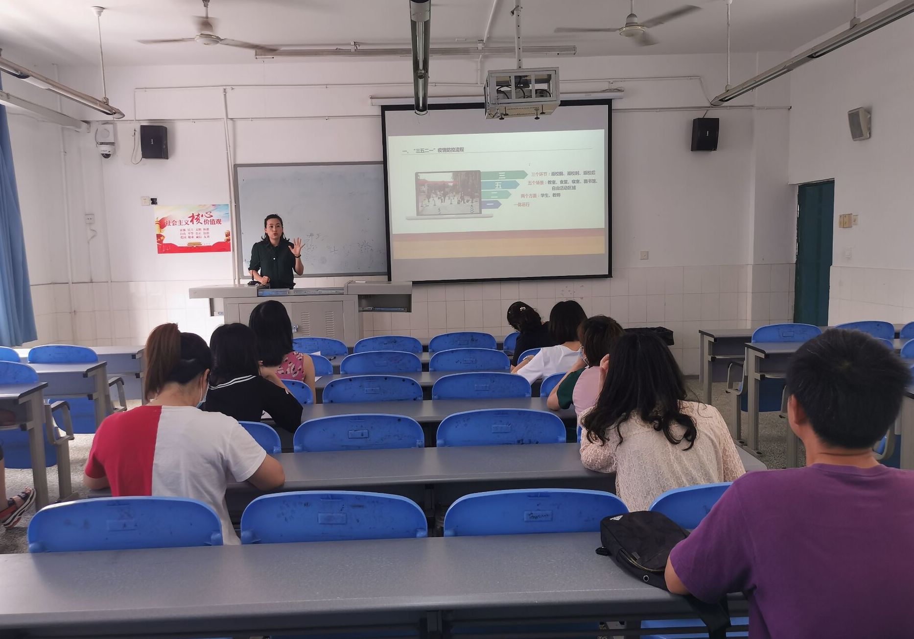 下午3点,叶芋伶就员工返校复课疫情防控相关制度、流程、工作要求及近期工作安排、时间节点等对返校班级辅导员、班主任开展专题培训。