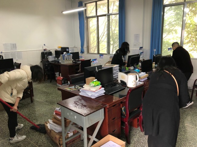 上午9点,各办公室、实训室负责人及老师准时到位,对办公室、实训室、楼道及卫生死角进行全面清扫。同时,9名党员组成的志愿服务队在爱国苑小区集中,开展“联包帮”大院卫生清扫志愿服务。