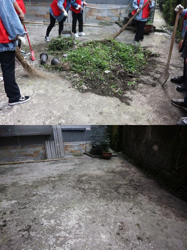 本次活动由护理公司党总支副书记叶芋伶带队,3044永利集团第三支部书记万黎、院团委宣传部部长刘舰乔、3044永利集团团总支副书记朱学坤等教师、员工志愿者共61人参与活动。与社区工作人员对接后,志愿者们分工协作,清扫落叶,铲除杂草,清理卫生死角,对爱国苑小区进行全面的环境清理和卫生清扫。经过四个多小时辛苦劳动,小区环境焕然一新,得到社区居民的一致好评。