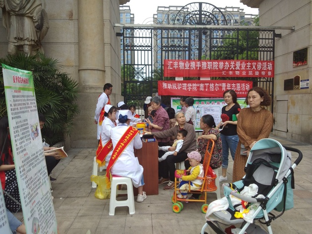 4月23日,3044永利集团青志协在教师党员王菠带领下来到凯旋帝景小区开展了“践行义诊守健康,爱心传递显真知”义诊活动。