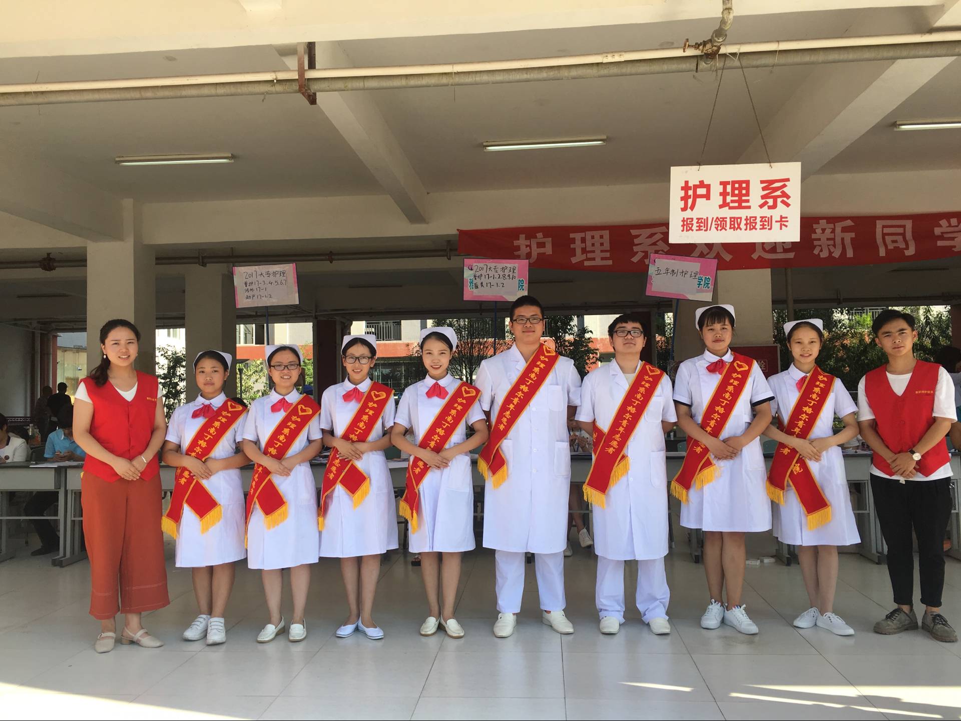 护理系志愿者的良好面貌,充分展现了护理工作人员的细心、耐心、责任心,让新生们感受到护理系师生们的热情。