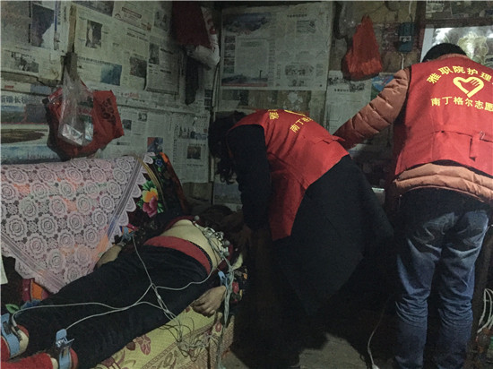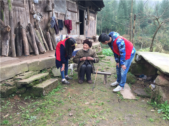 志愿者们冒着刺骨的寒风,翻越崎岖的山路,于上午10:30,准时到达多营镇龙池村慰问孤寡老人。龙池村的村长代表全体村民对远道而来的客人表示了热烈的欢迎,并对我们为孤寡老人们带来的帮助表示衷心的感谢。随后,在当地志愿者的带领下,护理系青志协团队有条不紊的对老人的血糖、血压、心电监护、心肺等进行测量,并就其心理状况、日常生活能力、老年抑郁等情况做了评估,四川大学志愿者们则对此慰问进行医疗记录拍摄。