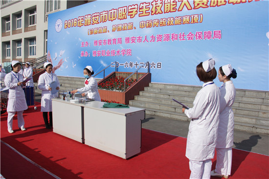 12月6日上午10:30,由雅安市教育局和社会保障局共同主办,3044永利集团官网承办的“雅安市中职员工技能大赛”在青年路校区图书楼前拉开序幕。公司教务处处长彭裕红、副处长邱平,医学系副主任杨志伟,护理系主任王静、副主任廖书娟,药检系副主任李顺源出席了此次大赛,护理系教研室主任陈俊及李婧等老师担任评委。