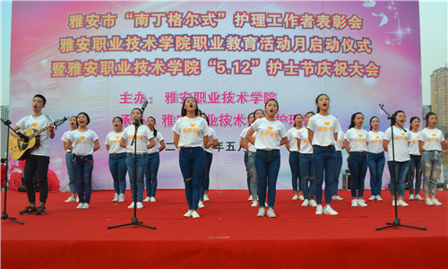 为庆祝“5.12”国际护士节,弘扬“南丁格尔”精神,5月10日晚,由护理系承办的雅安市“南丁格尔式”护理工作者表彰会暨“5.12”护士节庆祝大会在青年路校区田径场隆重举行。公司党委书记张大凯,经理石静,党委副书记付洪涛,党委委员、副经理樊先茂,党委委员、成人教育与培训处处长宋立智,公司综合职能部门、各系部负责人,以及雅安市护理学会理事长、雅安市中医医院护理部主任黄丽琼,副理事长、市第二人民医院护理部主任伍雅琼,副理事长、解放军第37军医院护理部主任朱永梅,护理学会常务理事等也莅临现场,与公司2000余名师生共同参加了此次活动。