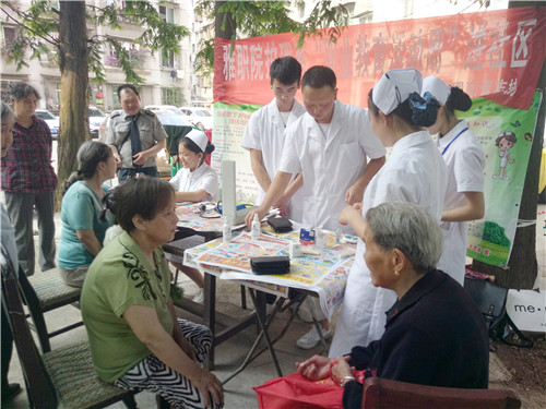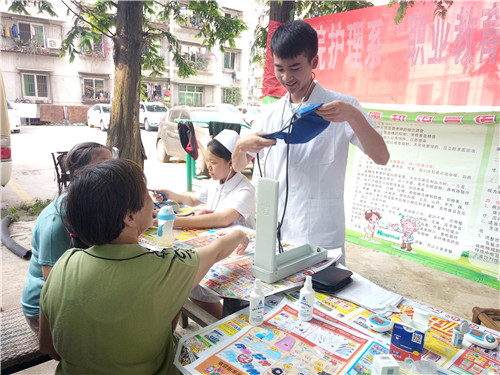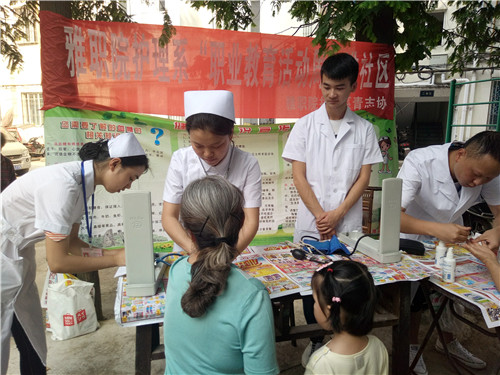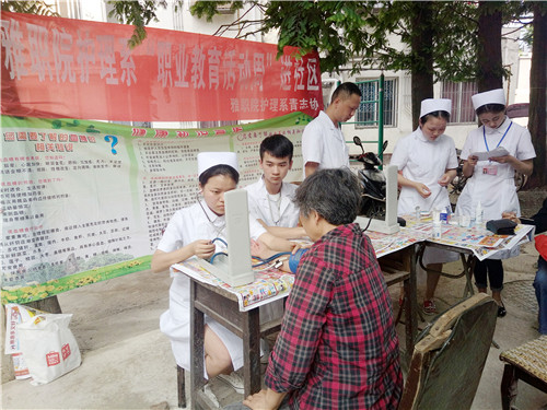 职业教育活动周,关爱温暖进社区。5月11日16:30,3044永利集团官网护理系青志协来到了雅州大道光网智慧小区,开展了“职业教育活动周进社区”的免费义诊活动。