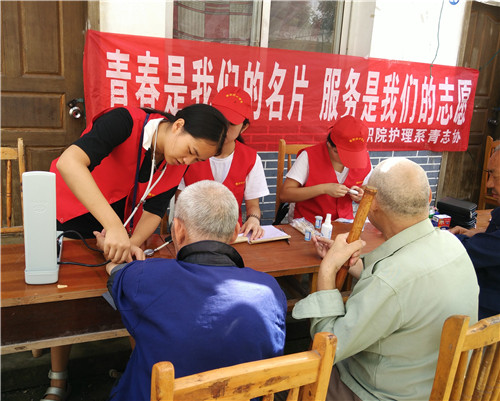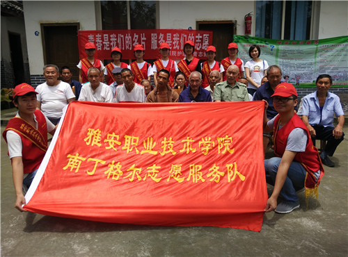 2015年7月16日早上8:00,在系团支部副书记万黎老师等指导老师的带领下,我系“南丁格尔志愿服务团队”一行共11人,来到了雅安市名山区前进乡敬老院,开展了第一天的暑期“三下乡”活动。
