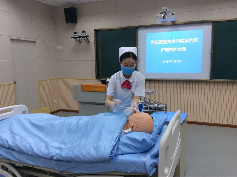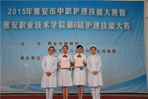 2015年4月23日下午14:30分,雅安市中职护理技能大赛暨公司第六届护理技能大赛在公司青年路校区实训中心楼二楼隆重开幕。此次比赛分成中职组和高职组两组,比赛项目为心肺复苏,铺备用床和鼻饲。公司护理系主任王静老师担任本次技能大赛的仲裁,公司附属医院护理部副主任张蓉、李小莉,护理系护理教研室主任陈俊等多位老师担任评委。