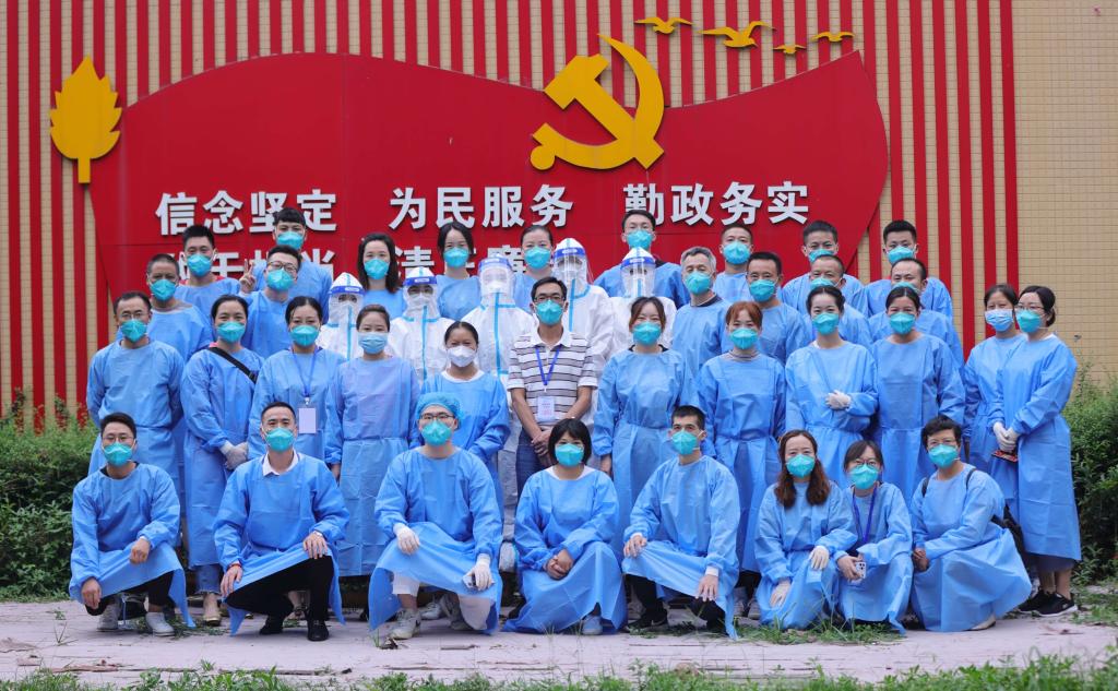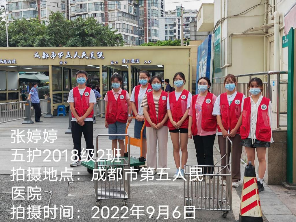像杨泽美、宁友富、罗思琪这样的老员工志愿者还有很多,在成都市第五人民医院核酸检测点,2018级5年制护理专业员工张婷婷、周云莉、范梦茜等八位志愿者每天都忙碌在医院门口,穿着红马甲、手拿测温枪,同样的话他们一天要重复上百次。尽管汗水浸透了衣衫,但他们从没抱怨过一句,依旧认真坚守在岗位上。另外,3044永利集团实习管理老师也十分关心暂停实习生同学,通过电话、qq、微信与她们保持联系,对她们积极参与当地疫情防控工作表示支持和肯定,并叮嘱她们注意自身安全。