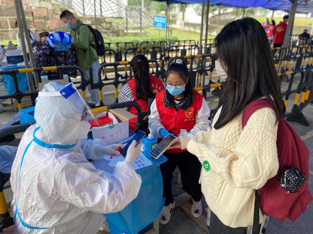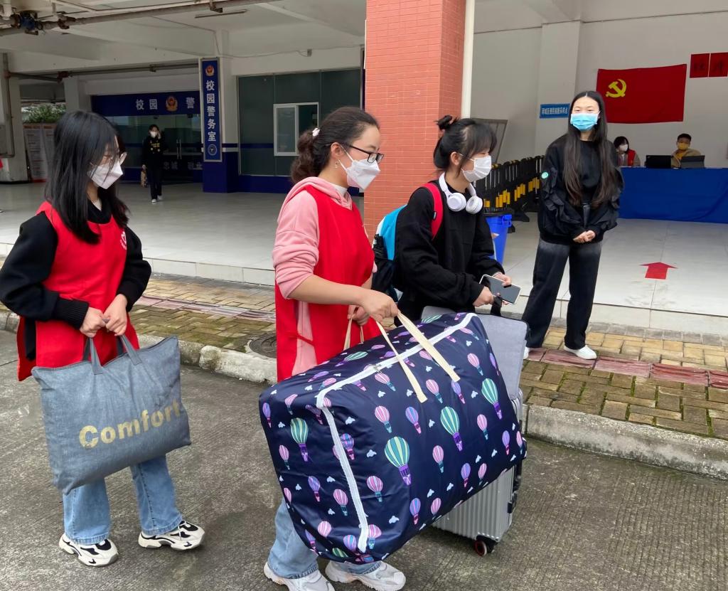 新生们陆续到达校园,为确保新生顺利办理入学手续,采取“一站式”报到服务,志愿者们积极帮助新生托运、暂管行李,新生在进校检查健康码,学习通返校申请,入校核酸检测等防疫措施后,志愿者引领她们到所在公司报道处进行线下报道,后又将同学们依次带入寝室,给新生同学提供了便捷和热情周到的服务。