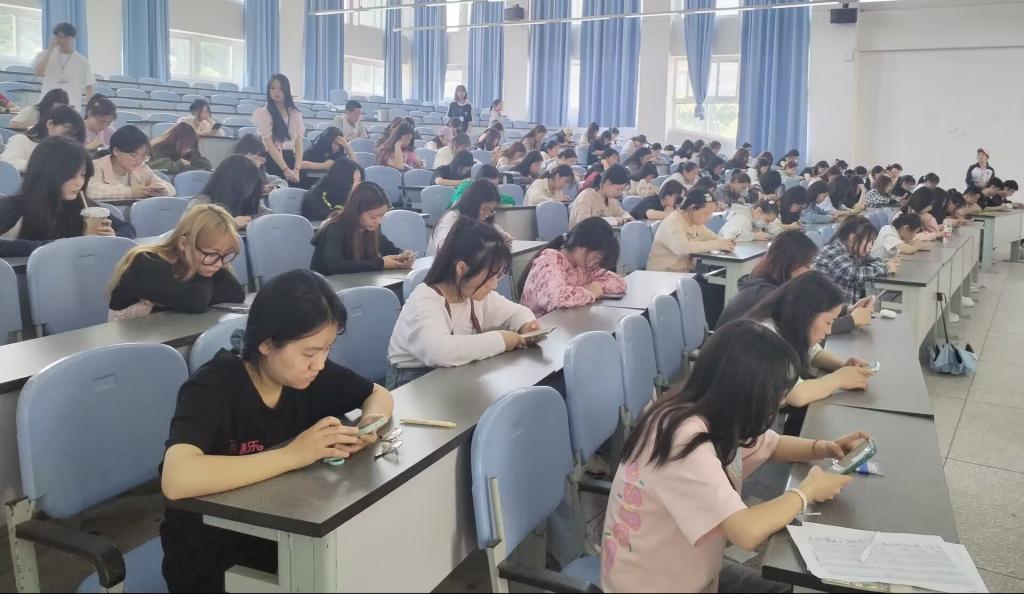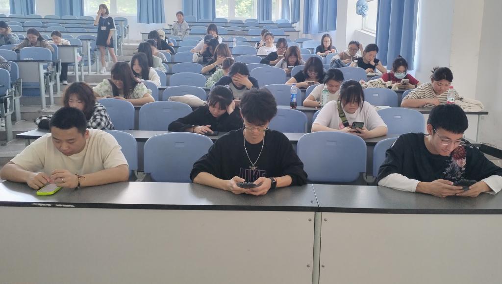 比赛考试内容为心理相关知识,通过手机在线考试进行,通过学习通提前发送题库,负责人宣布原则及考试要求。比赛中,参赛选手沉着冷静,认真作答,在规定时间内圆满完成考试。