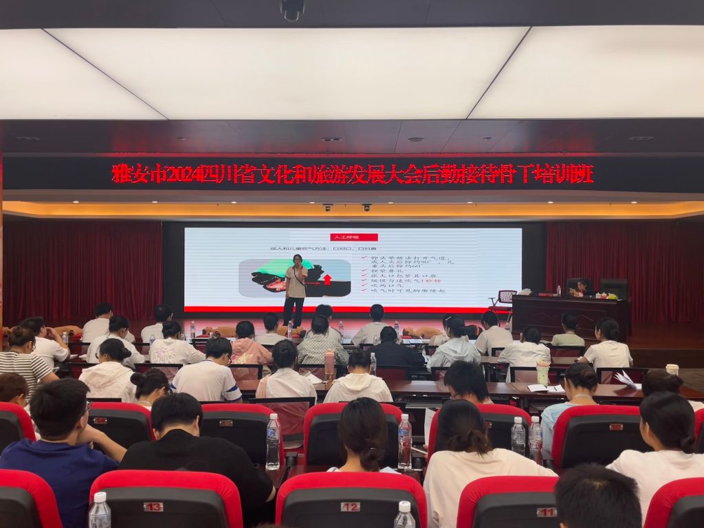 8月29日上午,3044永利集团应急救护培训团队黄丹、伍静薇受雅安市红十字会邀请,走进2024四川省文化和旅游发展大会后勤接待骨干培训班,进行应急救护知识培训,来自全市各县(区)、市级各单位以及高校的300余名旅发大会后勤接待骨干参加培训。