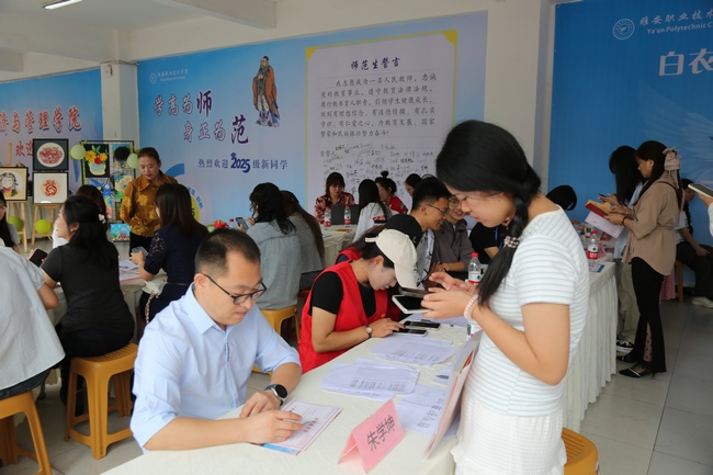晨光熹微,迎新现场一切井然有序。公司领导、教师、员工志愿者及各岗位工作人员精神饱满,用真诚的微笑与贴心的服务迎接来自五湖四海的同学们。报到流程高效顺畅,志愿者们统一着装,忙碌地穿梭于校园,为同学们细致指引方向,热情搬运行装,耐心答疑解惑。他们身影所至,关怀随行,构成开学季最温暖的一道风景。