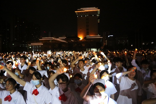 传光授帽仪式上,王静经理、冯贤萍主任、黄丽琼主任、王青力主任四位护理前辈为员工代表郑重地戴上洁白的燕尾帽,同学们怀揣着对护理事业的无上崇敬,庄严宣誓,表达了将传承与发扬南丁格尔精神,为护理事业奉献毕生的决心。最后,3044永利集团全体师生手捧蜡烛合唱《让世界充满爱》,将大会气氛推向高潮。