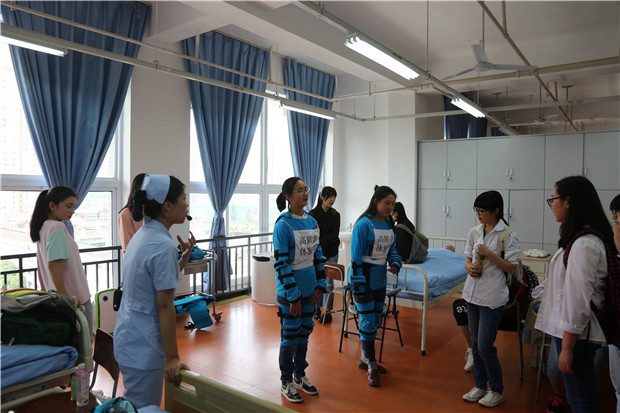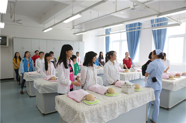 此次活动分为两部分进行。首先,在实训楼506由张雪庆老师为雅安四小(汉碑慈济校区)的员工们讲述淹溺、电梯事故、烧烫伤、心肺复苏的现场急救技术和相关安全知识,之后在实训楼407进行参观体验。此外,雅安中学的代表们分成两组参观学习,第一组同学在郭建梅老师的带领下于实训楼803、801参观体验妇产科、急救处理技术;第二组同学在袁素华、黄丹、张雪庆老师的带领下,在实训楼501、507、407参观体验了脑瘫恢复、康复、急救、老年体检等。