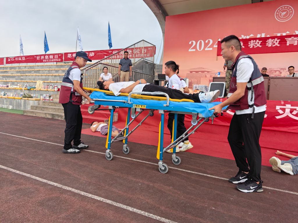 9月18日、19日上午公司分别在青年路校区、经开区校区足球场进行应急救护及防灾减灾普及培训,本次培训针对2024级全体新生,旨在进一步提高针对2024级全校新生应对突发意外事故的自救互救能力和防灾减灾能力,培训邀请了雅安市紧急救援中心、中国人民解放军后勤保障第九四五医院、雅安市红十字会的专家团队与校内专家一同开展,全校共6000余名师生参与,公司党委常委、副董事长陈冬冬出席本次活动。