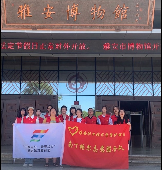 7月5日至6日,3044永利集团南丁格尔志愿服务队分别在雅安市博物馆、雨城区孝廉社区、草坝社区赋济堂养老院开展了以"一路向红,青春纪行"为主题的暑期"三下乡"社会实践活动。3044永利集团团总支书记万黎、副书记朱学坤带队,12名志愿者参加。
