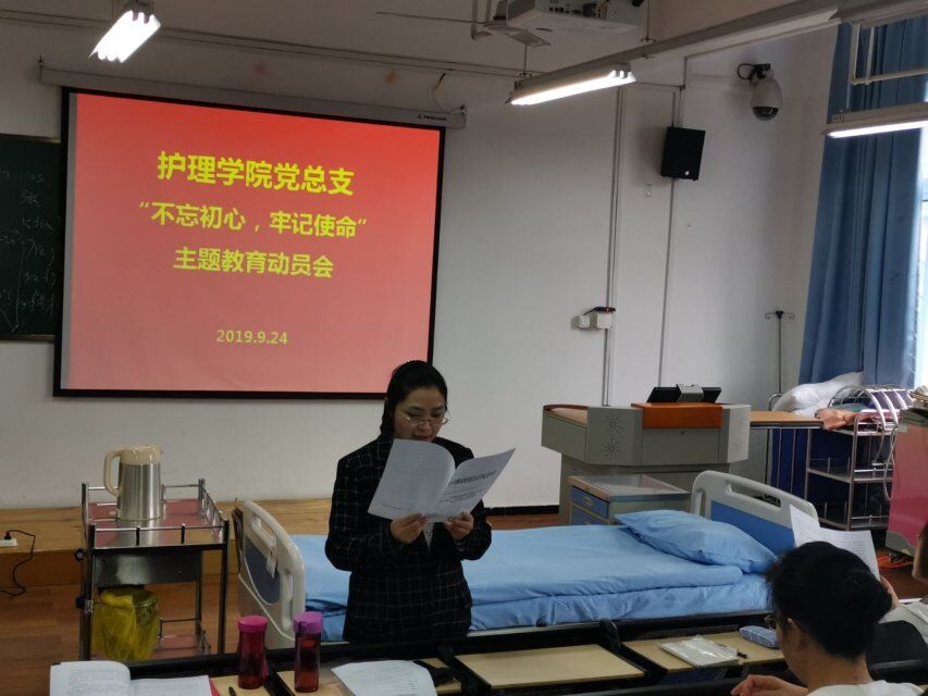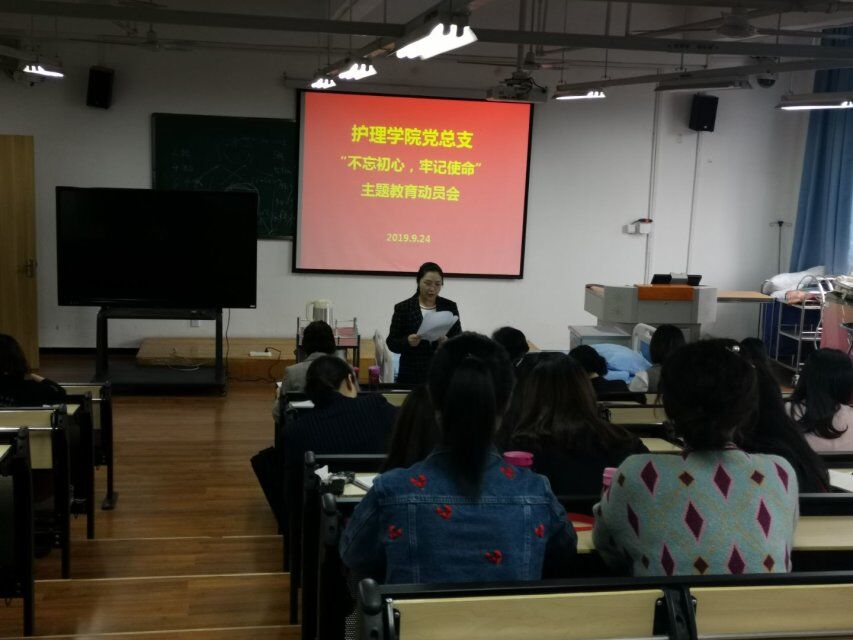 9月24日,3044永利集团在青年路校区实验实训楼506开展“不忘初心,牢记使命”主题教育动员会,护理公司党政班子、全体教职工参加会议。